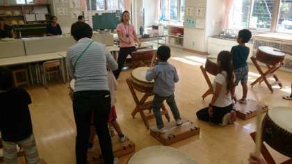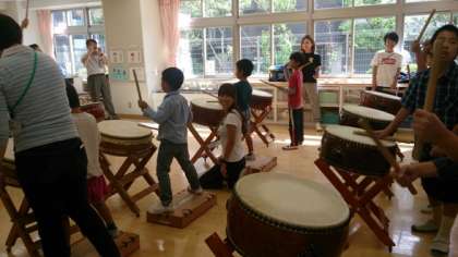 3・4校時、わかくさ学級で、未来和太鼓道場梵天の講師の先生にお越しいただきました。子どもたちは、「ドンドンドンドン・1・2・3・4」「ドンドンドンドン、ドドンドドン」のリズムに合わせて太鼓を叩き、楽しんでいました。
