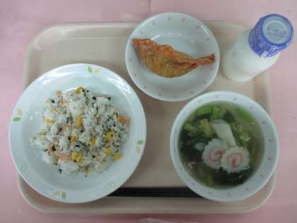 先週の金曜日(12/5)の給食の画像です。大人気メニューである「ジャンボぎょうざ」でした。子どもたちは大きく口をあけて、おいしそうに食べていました。