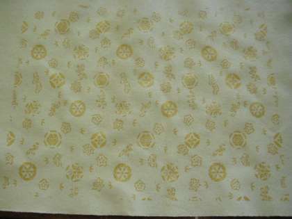 型紙に染料をのせていくと、あっという間に布地にきれいな柄が染まります。