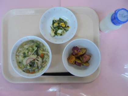 昨日(1/29)の給食の画像です。さつまいもを揚げて、甘いみつをからめた大学芋が大人気であり、おかわりじゃんけんを行うクラスも多く見られました。
