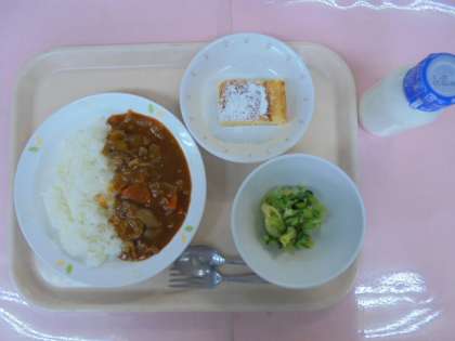 先週の金曜日(1/30)の給食の画像です。お誕生日給食であり、ハヤシライスとチーズケーキを作りました。じっくり煮込んだハヤシライスを子どもたちはたくさん食べてくれました。