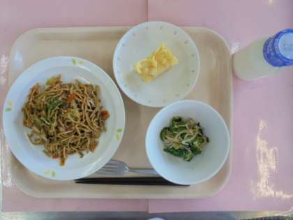 先週の金曜日(2/27)の給食の画像です。お誕生日給食であり、デザートは洋ナシのケーキでした。洋ナシを散らし、ふんわりとしたケーキに仕上がりました。