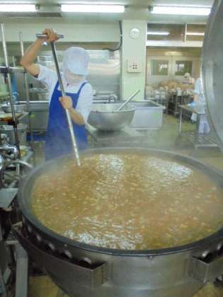 昨日(3/18)の給食の画像です。大きな釜いっぱいにカレーを作りました。