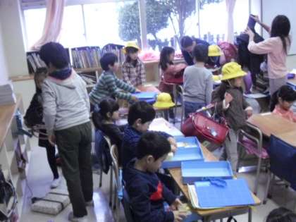 クラスへ入ると上着のしまい方、ランドセルのしまい方、