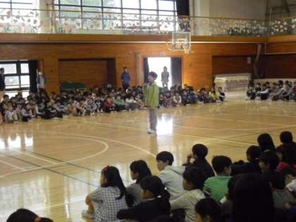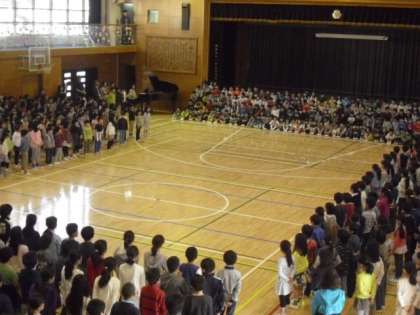 体育館に大きな声が響き、1年生を包みました。(HP担当)