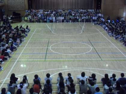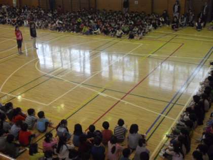 1年生からは、歌と学校生活での楽しいことを呼びかけで伝えました。