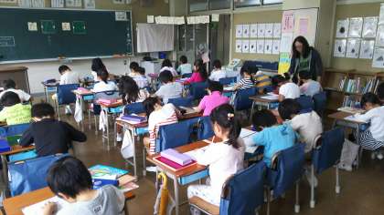 月曜日は、子どもにとってもエンジンがかかりきらない日ですが、桜町小学校では、1年生の教室でも落ち着いてしっかり取り組む姿が見られます。