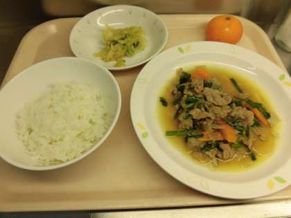 今日の献立 ごはん 牛乳 プルコギ 中華サラダ 冷等みかん