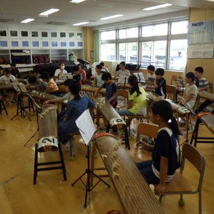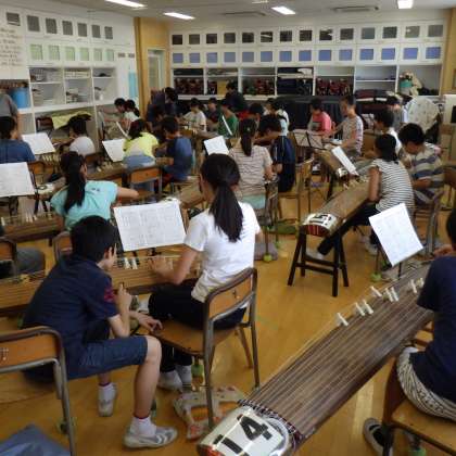 「伝統文化に親しもう」をテーマに音楽科でお箏を弾くことを体験しました。「さくら」の曲を日本独特の楽譜を見ながら練習しました。あっという間に弾くことができるようになりました。