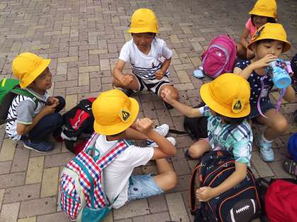 トイレ休憩中、じゃんけんで盛り上がる子どもたち。