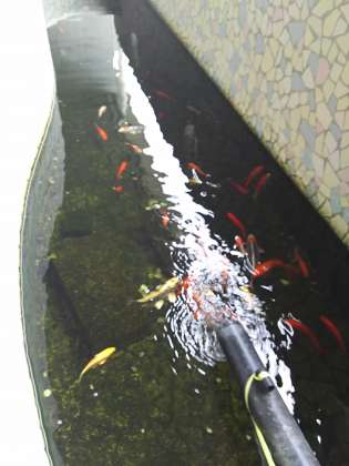 2年生の男の子のおじいちゃま、おばあちゃまから桜町小学校にと錦鯉を15匹あまりいただきました。