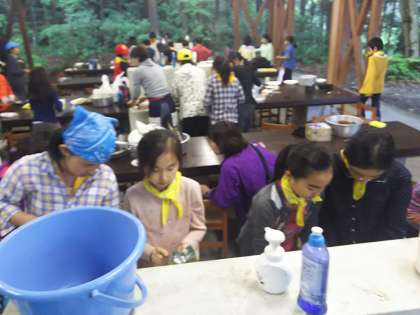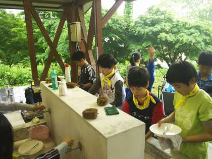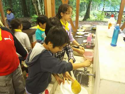 冷たい水ですが、飯盒についた煤をみんなしっかりきれいにしてくれます。