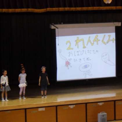 6月8日に行われる子どもフェスティバルのお店紹介がありました。まずは、2年生です。
