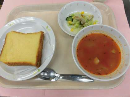 今日の献立 フレンチトースト 牛乳 ミネストローネ ベーコンサラダ