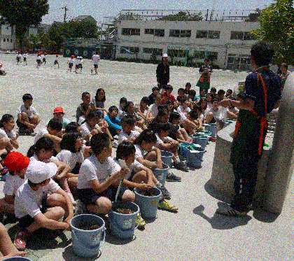 最初はいやがっていた子どもたちも、土の中に手を入れるとテンションが上がってきたらしく、ワーワー言いながら頑張っていました。元気に育ってほしいものです。