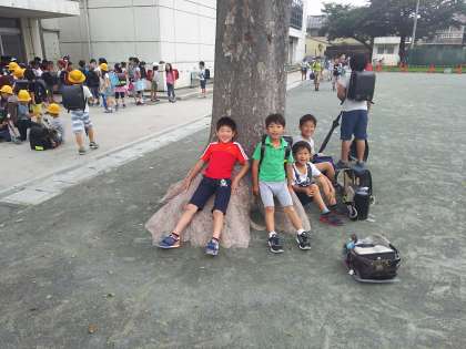 子どもたちに木陰を与え、寄りかかっても抱き抱えてくれます。