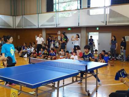 桜町小、用賀小、京西小、二子玉川小、学大世田谷小の子どもが集い、卓球で交流しました。