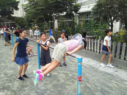 なかにはなかなかの鉄棒名人がいて、技の素晴しさにびっくりします。