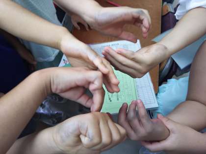 私が「がんばった証拠だね!」と言うとわたしも、ぼくもと手を見せてくれました。