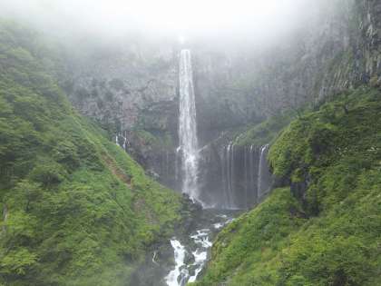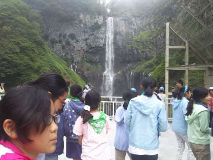 高速エレベーターで100*m下がり、華厳の滝観瀑台へ