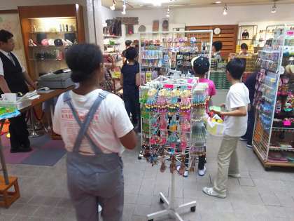 家族の顔を思い浮かべながら、一生懸命、お土産を選ぶ横顔がかわいいです。