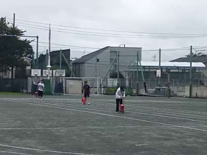 雨が気になりますが、子どもたちがしっかりと運動会練習ができるようみんなでラインを引きます。