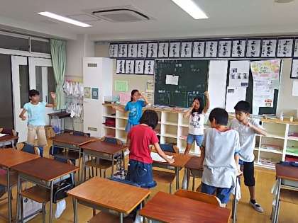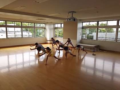 5年生が運動会の表現演技ソーラン節の自主練習に励んでいます。