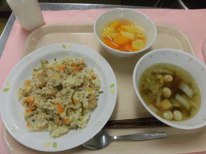 今日の献立 シシジューシー 牛乳 アーサー汁 フルーツポンチ