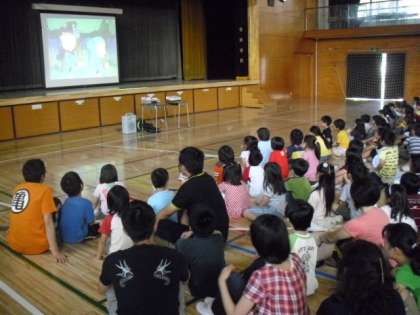 はじめに、玉川警察署のおまわりさんからお話を聞き、次にビデオをみて学習しました。