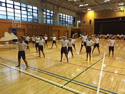 応援団の子どもたちが朝練に励んでいます。