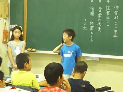 各学級では、子どもたちが順番に朝のスピーチをします。