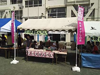 おやじの会は、ソースせんべいのブースを開いてくださり、ルーレットの当りでなんと50枚のソースせんべいがもらえました。