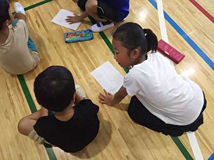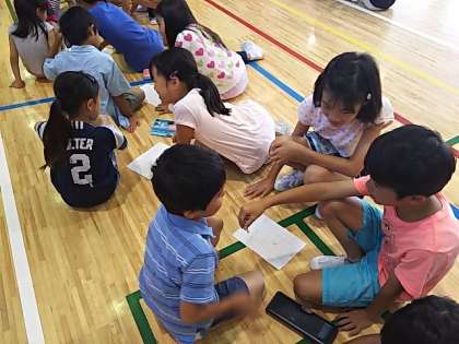 低学年と高学年がペアを組み、ビンゴに挑戦します。