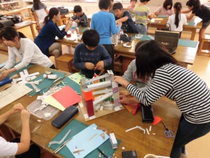 そして共同制作として3つの班に分かれて紙工作を行いました。