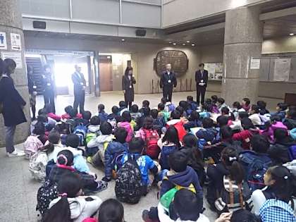 学校から歩いてきましたが、4年生の子どもたちがしゃきさゃき歩いてくれたので、予定より早く到着できました。