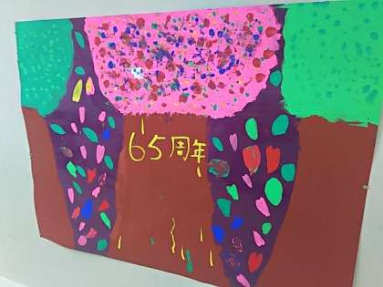 造形クラブの子どもたちが、創立65周年をお祝いするポスターを作ってくれました。