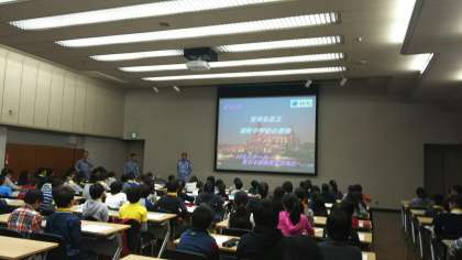 まずは、レクチャーホールで製鉄の流れについて学びます。