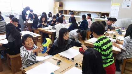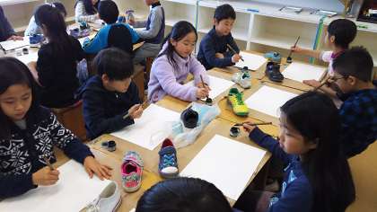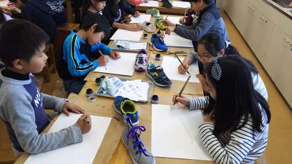 竹ペンと墨汁を使い、自分らしい靴を自分らしく描いてほしいと願います。