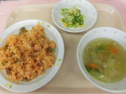 チキンライス 牛乳 白いんげん豆の田舎風スープ コーンサラダ