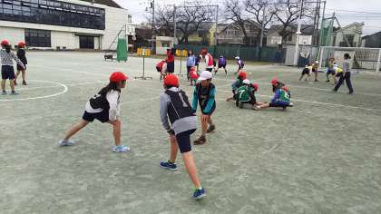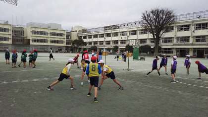 チームごとにランニングや準備運動をしっかりして、自主的に学習を進めていきます。