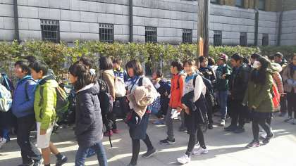 国立科学博物館での見学を終えて、学校へ向かいます。