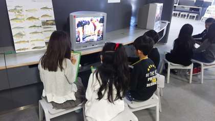 学級閉鎖により二子玉川の野鳥観察ができなかったクラスが郷土資料館の資料を使って世田谷の野鳥について学習します。