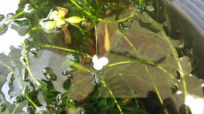 今朝は肌寒い雨の朝ですが水草に花が咲いて、ここにも春が来ています。
