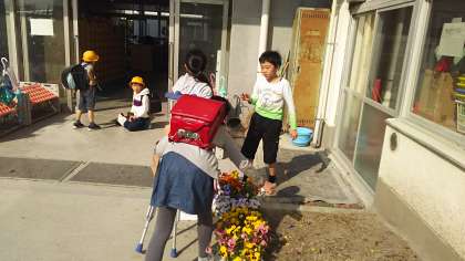 理科栽培委員会の子どもたちが、バンジーの花がら摘みをしてくれています。