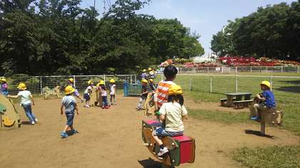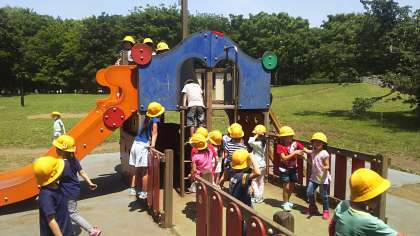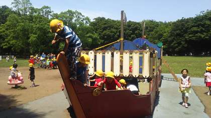お弁当タイムのあとは、アスレチックや遊具で遊びます。