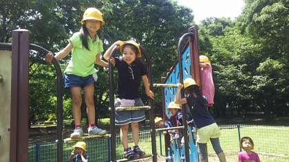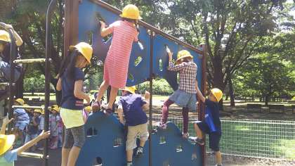 お弁当タイムのあとは、アスレチックや遊具で遊びます。