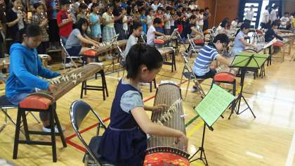 桜町小学校では、3年生で三味線に親しみ、4年生からは本格的なお琴の演奏に取り組みます。