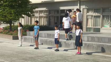 リーダーの6年生は、みんなよりも一足早く登校して下級生に元気を与えられる大きくてはっきりした声であいさつができるように練習します。