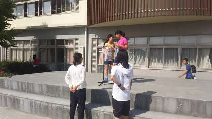 また、お知らせがある委員会の子どもたちも全校の前でも自信をもって、堂々と話せるよう練習します。