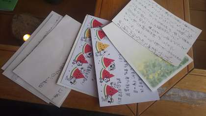 川場移動教室の思い出を家族に伝えるはがきを書きました。